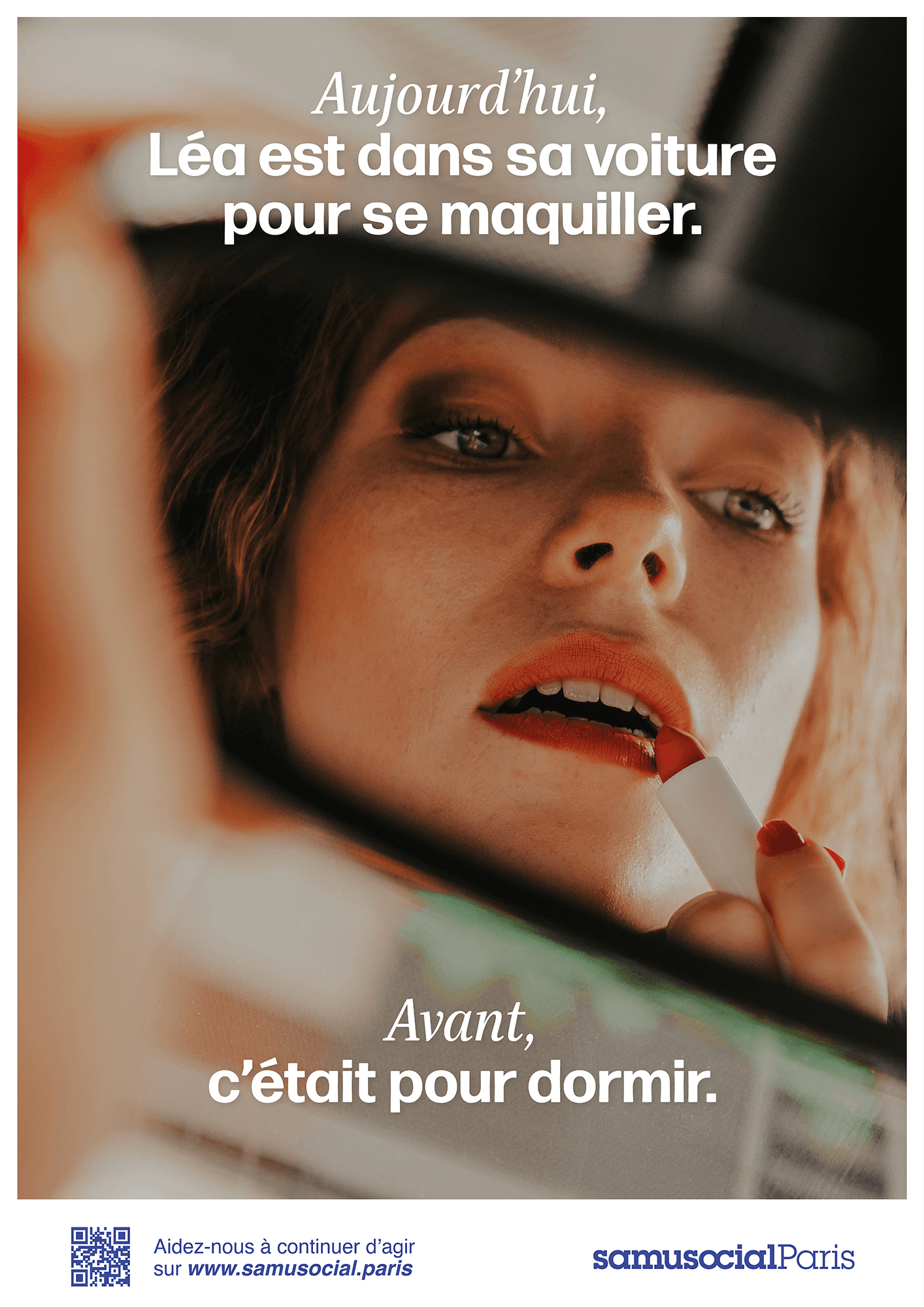 Projet réalisé en duo pour sensibiliser au travail du Samusocial auprès des sans-abris. Nous avons imaginé la campagne “Aujourd’hui et Avant”, basée sur le contraste entre des gestes anodins du quotidien et leur signification passée pour des personnes en situation de précarité. La campagne mêlait affichage, podcast de témoignages et une activation interactive sur une place publique : un quiz dans une voiture, où les participants découvraient peu à peu qu’elle avait été un refuge pour une personne sans domicile.